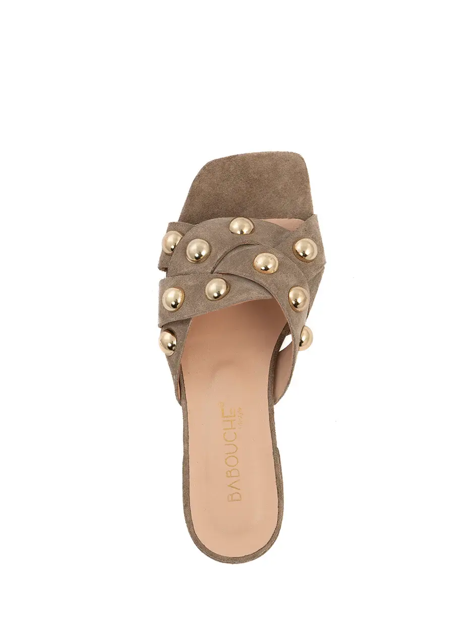 Voeg een flinke dosis stijl toe aan iedere look met deze leren slippers van Babouche die worden gekenmerkt door een goudkleurige studs. De slippers met brede band zijn handgemaakt in mooie Italiaanse materalen en kwaliteit die zich volledig naar je voet zal vormen. Met deze stijvolle slippers maak je echt een statement.