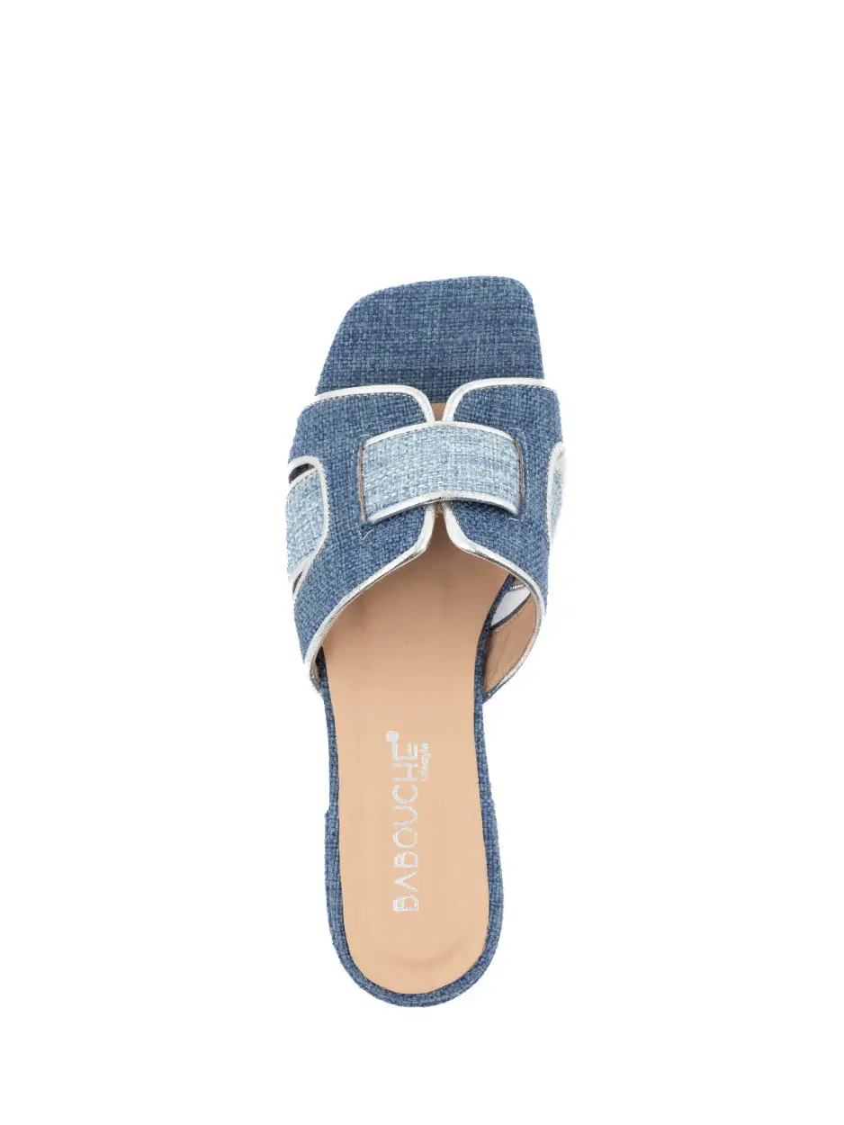 Babouche Sera-71 Sandaal in Silver/DarkBlue/LightBlue Voeg een flinke dosis stijl toe aan iedere look met deze slippers van Babouche die worden gekenmerkt door de mooie gevlochten band. De slippers met brede band zijn handgemaakt in mooie Italiaanse materalen en kwaliteit die zich volledig naar je voet zal vormen. Met deze stijvolle slippers maak je echt een statement