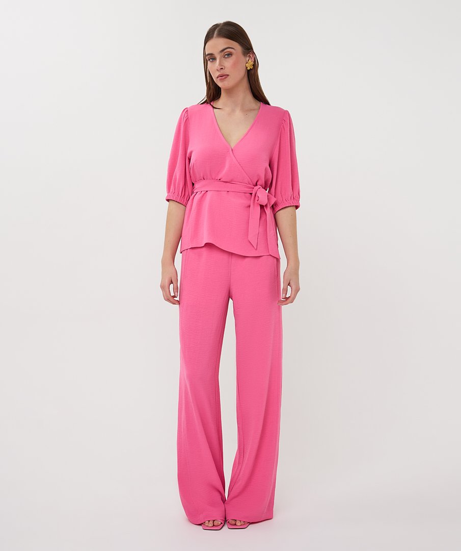 Esqualo Blouse Wrap Over Crinkle in Pink
