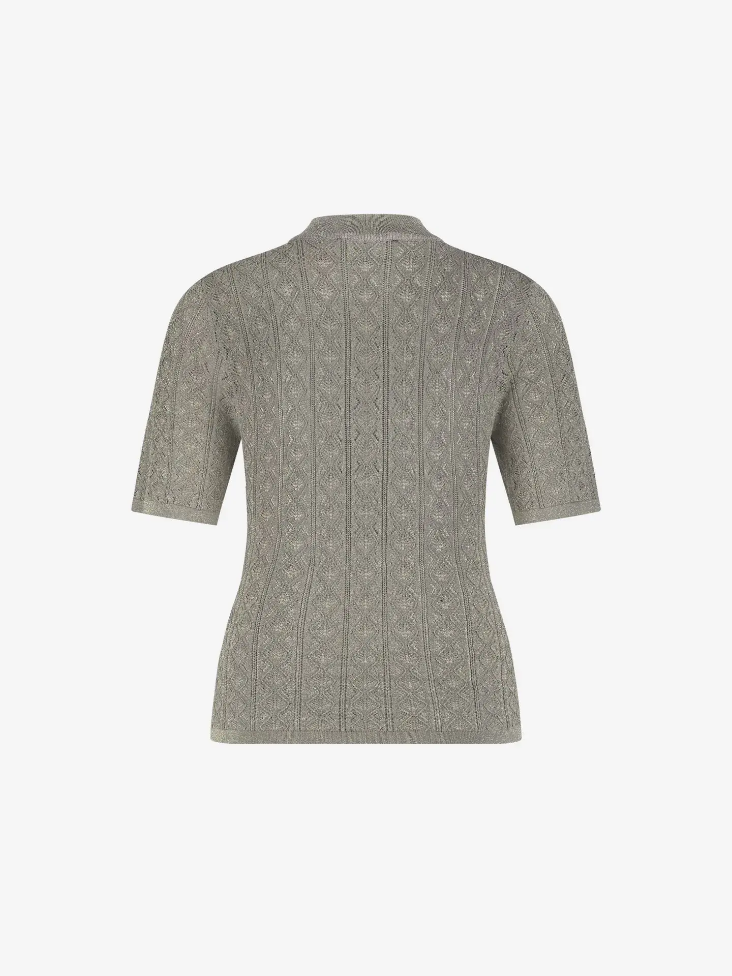 Opengebreide top met een opstaande, geribbelde hals en een subtiel logo detail. De top is voorzien van een normale pasvorm en halflange mouwen.