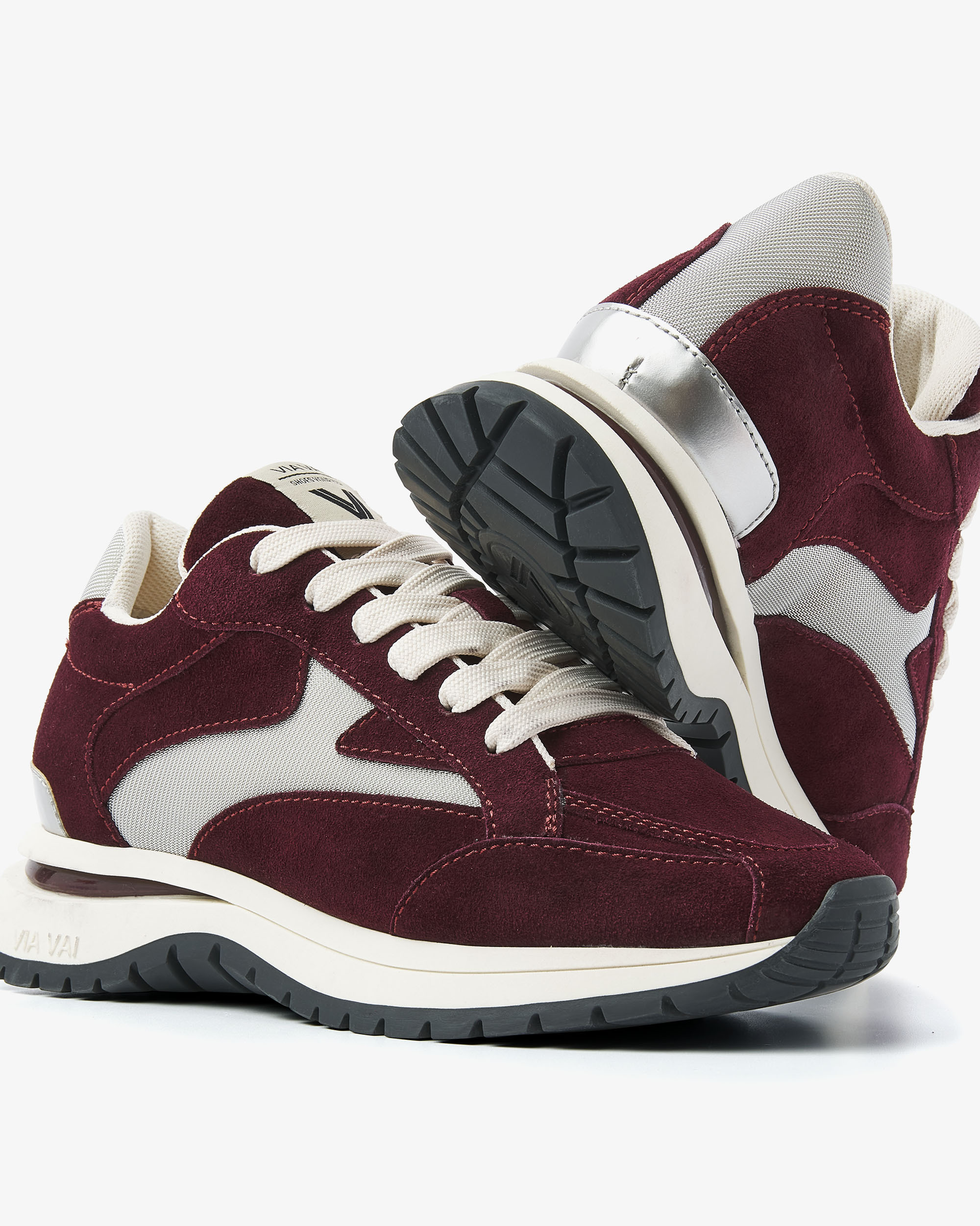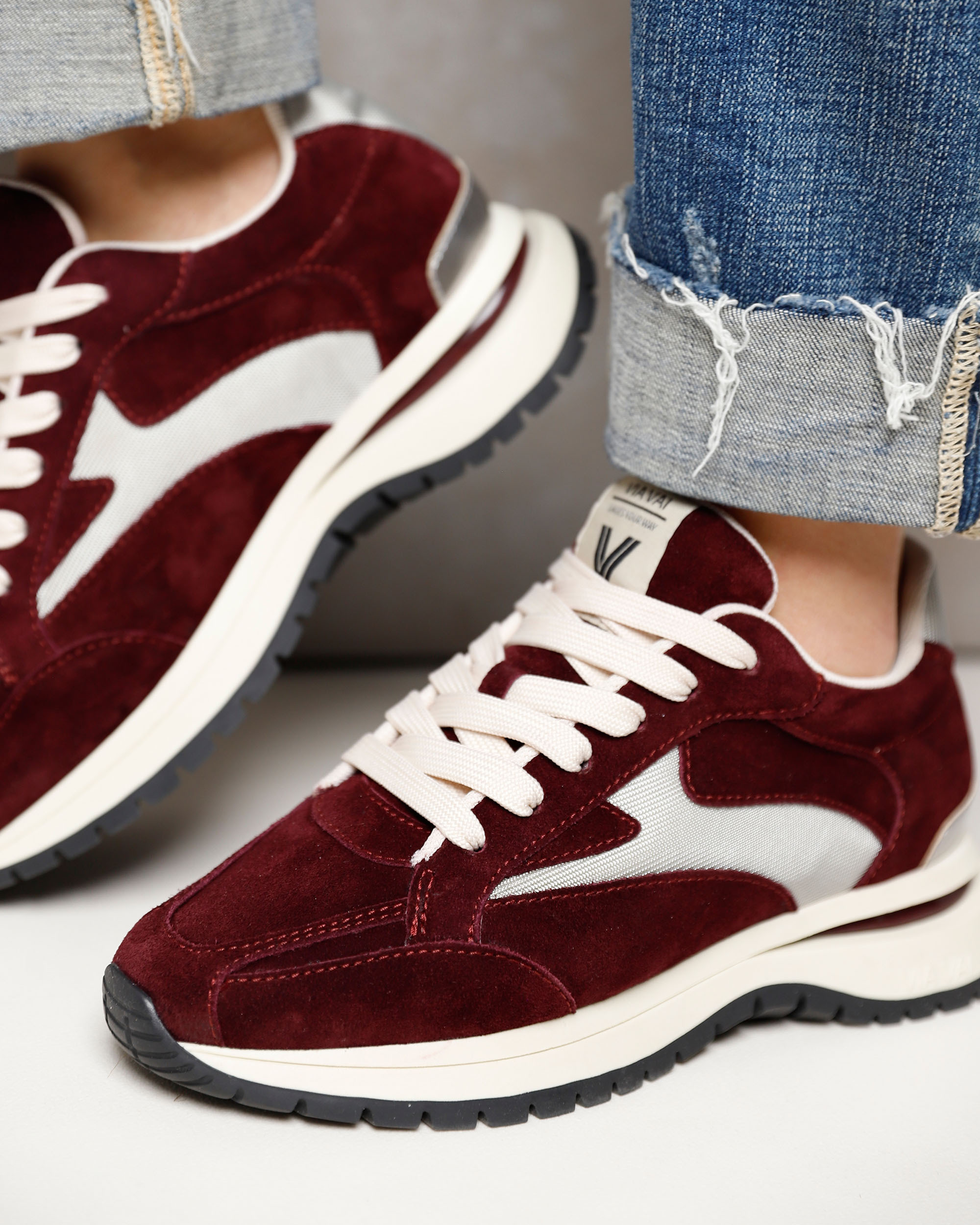 Key features Dynamische zool met gekleurd element Uitneembaar voetbed Metallic detail op de hiel Mesh binnenvoering Combinatie van hoogwaardig suède, leer en mesh Handgemaakt in Portugal Usher Riggs bordeaux sneakers The ultimate blend: een sleek design, sporty vibes en tijdloze materialen. Usher Riggs valt direct op door de hoogwaardige suède afwerking in combinatie met stoere mesh accenten. De unieke zool, opgebouwd uit meerdere componenten, geeft de sneaker een dynamisch en stijlvol silhouet.